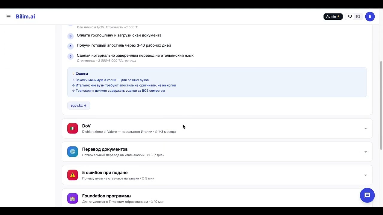 “AI разобрал мой GPA по итальянской шкале и показал какие университеты реально рассмотрят мою заявку. Очень конкретно.”